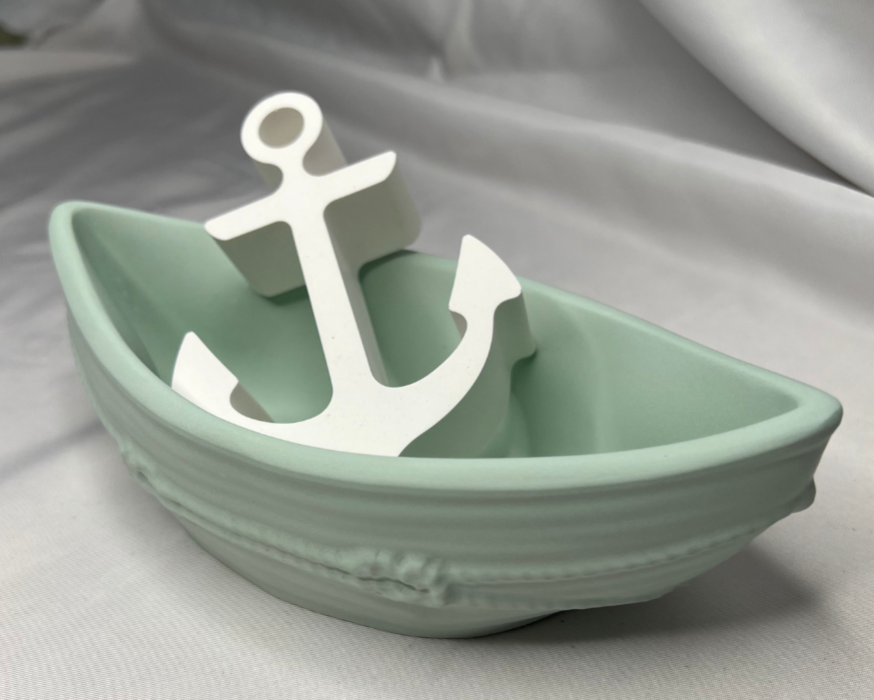 Das Boot und der Anker wurden aus hochwertigem Raysin gegossen – einem robusten, geruchsneutralen Gießpulver auf Gipsbasis, das durch seine glatte, matte Oberfläche besticht. Jeder Artikel ist ein kleines Unikat und mit viel Liebe zum Detail gefertigt.