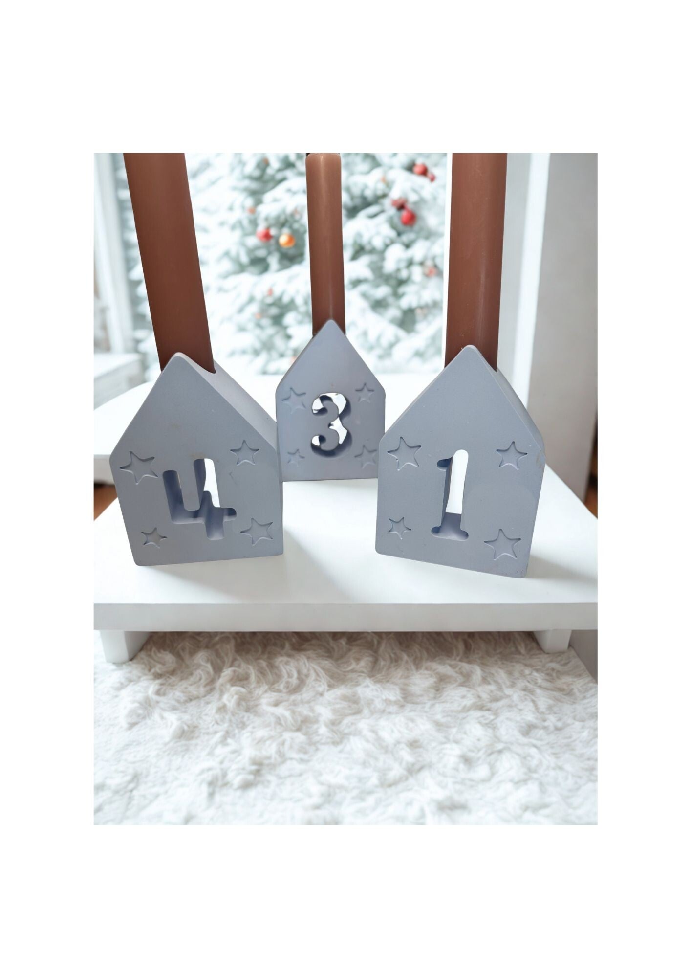 Adventshäuser aus Raysin – stilvolle Kerzenhalter mit den Zahlen 1–4