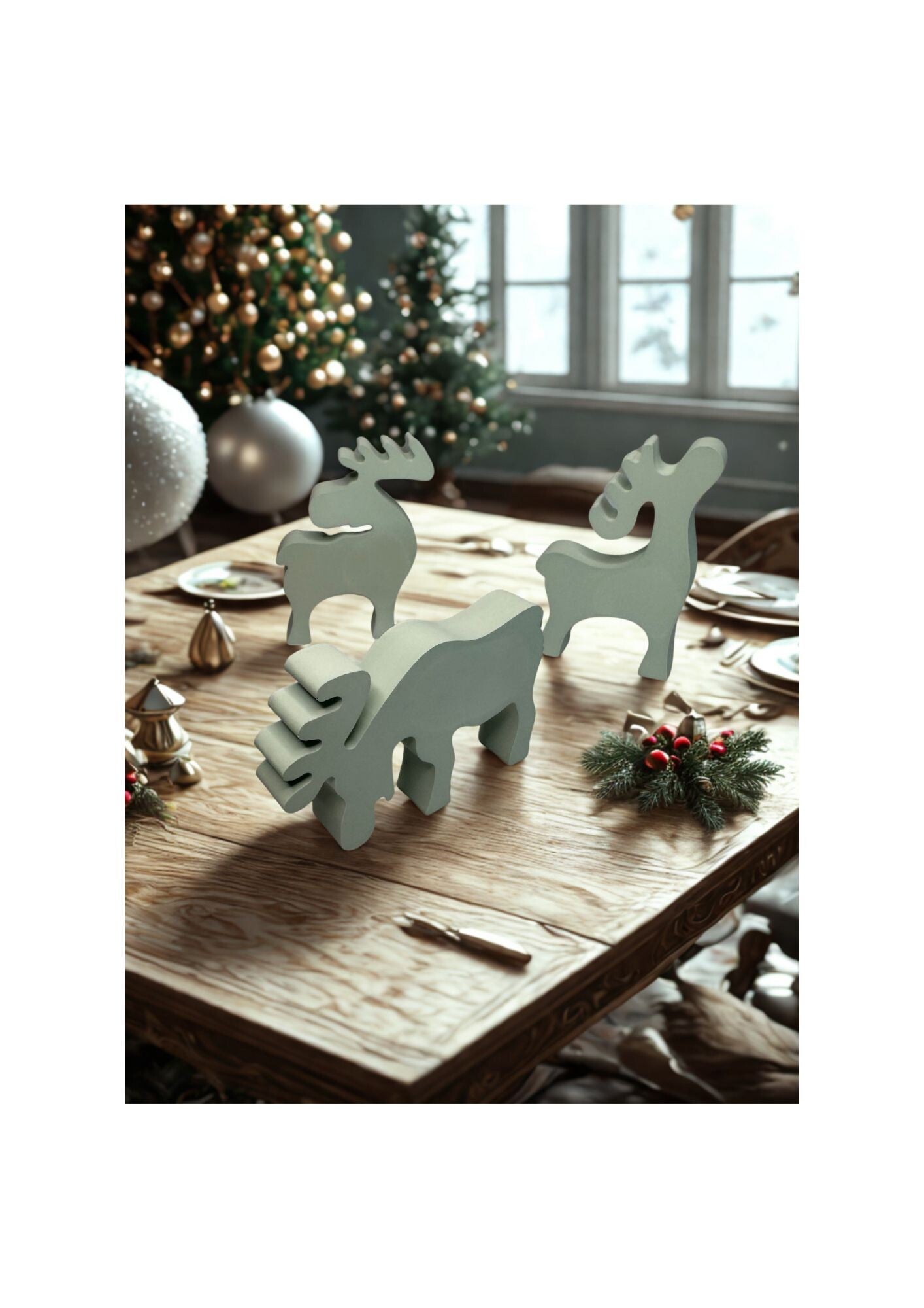 Mit diesen Elchen erhältst du eine dekorative Ergänzung für die Advents- und Weihnachtszeit – schlicht, modern und dennoch voller Charme.